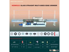 Technical Specifications:The number of motors:12Grinding speed:500~2500m/minChamfer Angle: 0°~ 45°Thickness of processed glass: 3 ~25mmSize of processed glass:MAX: 3000 x 3000mm MIN: 130 x 130mmTotal power:26KWWeight: 4000 KGSize:7700(L) x 1200(W) x 2500 (H)mm